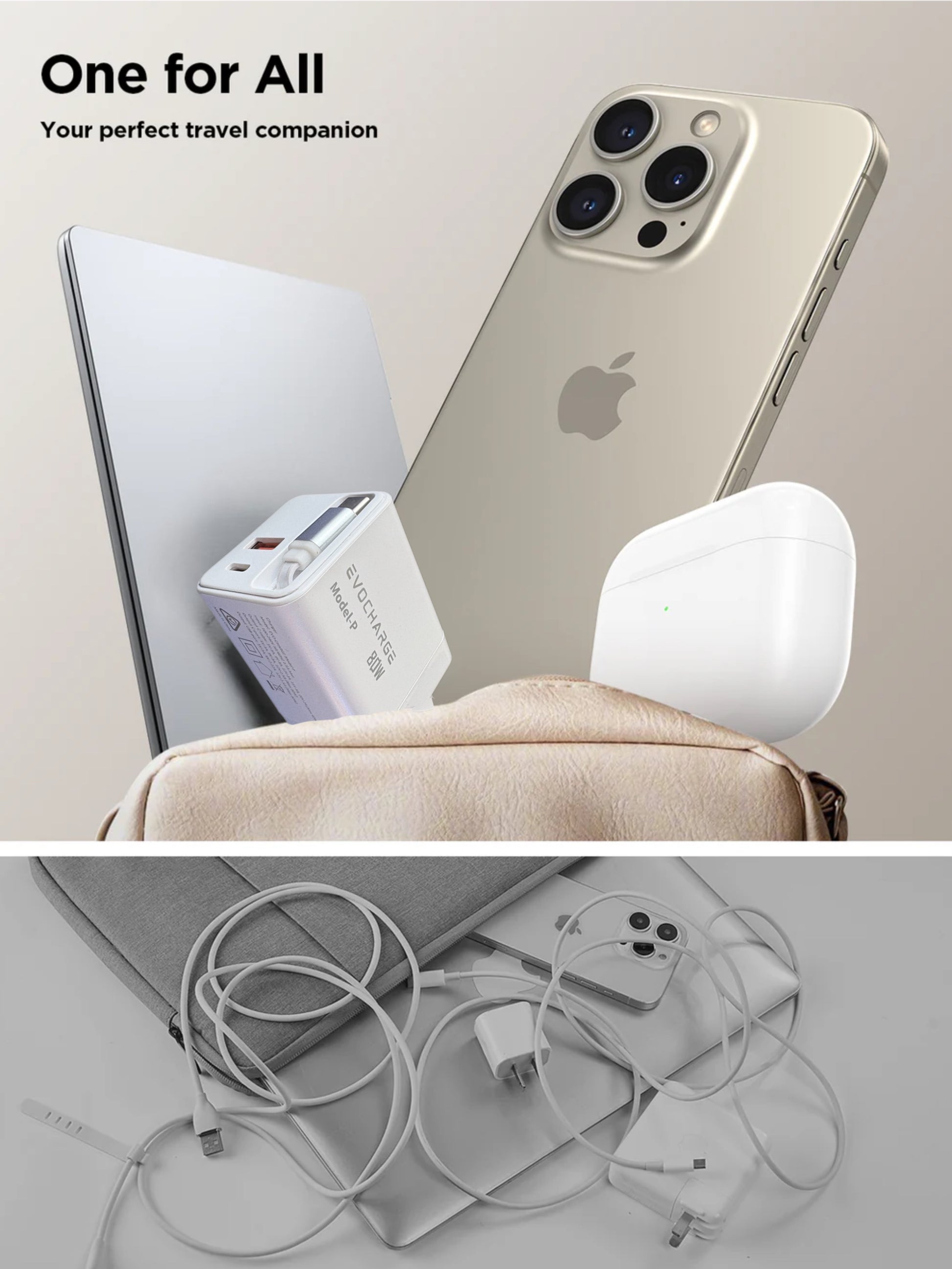Power up anywhere with the EVO-CHARGE Model-P, your all-in-one travel adapter, fastest charger on the market designed for speed and convenience. Compact, powerful, and universally compatible, it’s the perfect charger for your busy, on-the-move lifestyle